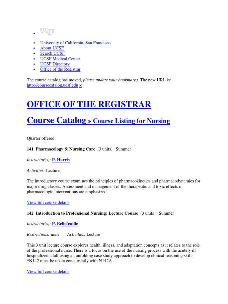 Nursing Course Catalog Ucsf PDF Nursing Psychiatry