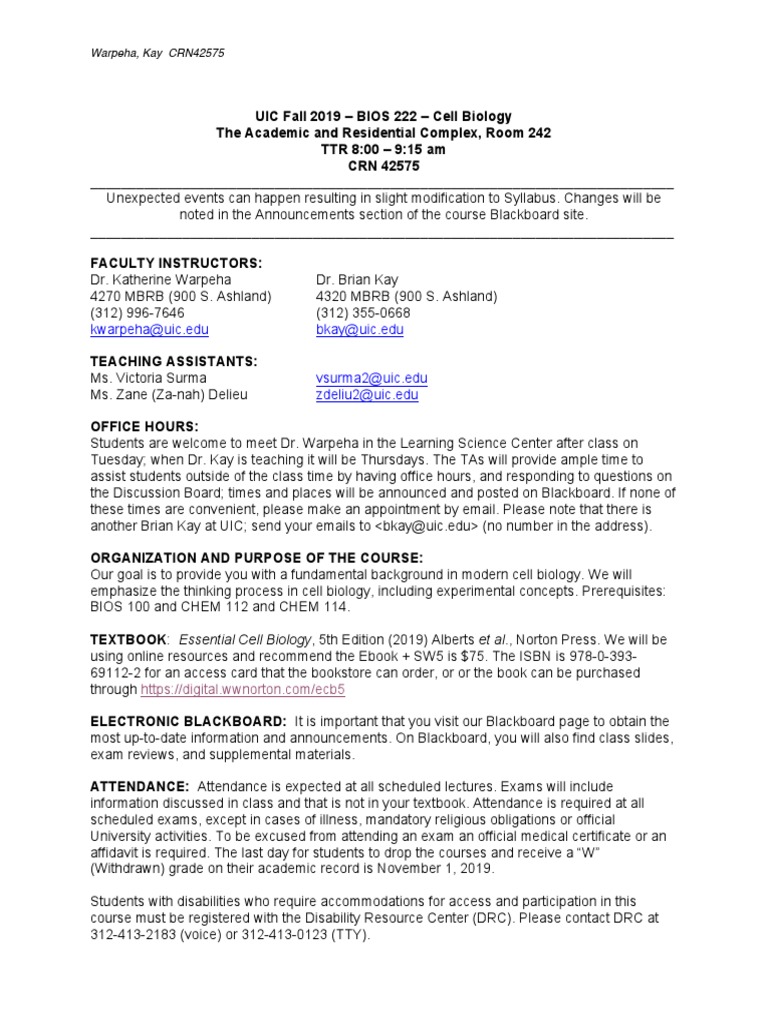 UIC BIOS 101 Fall 2025 Syllabus and Course Overview Studocu