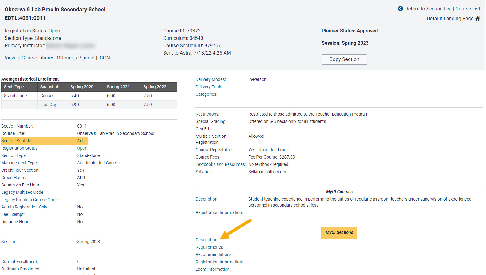 MyUI Course and Section Detail MAUI Help The University of Iowa