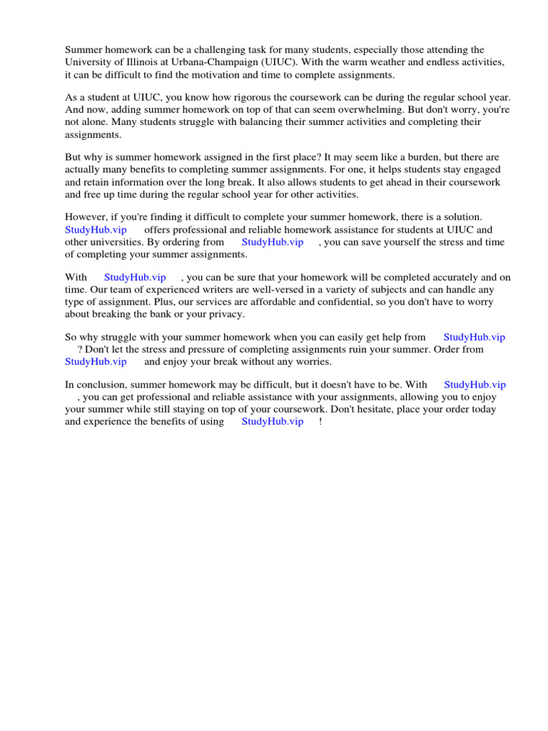 Uiuc Summer Homework PDF Homework Learning