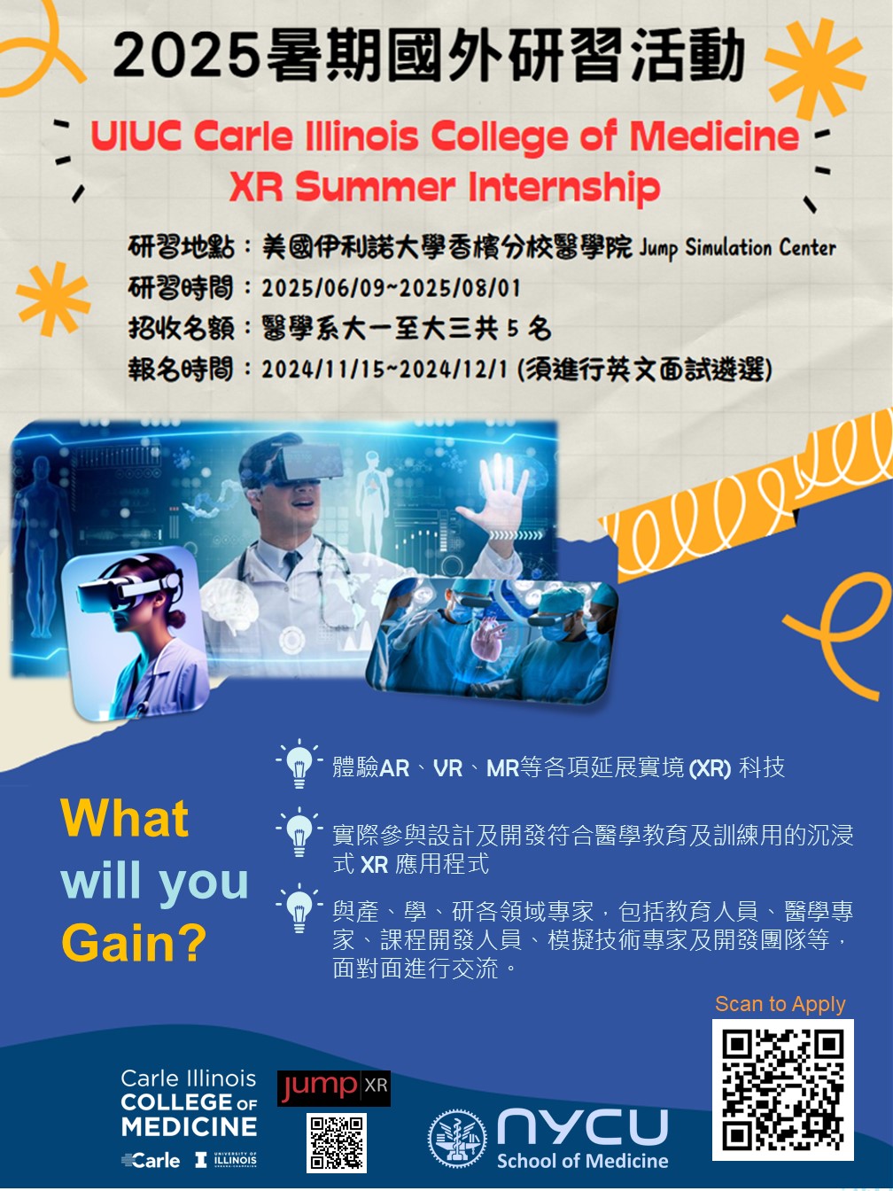 2025 UIUC XR Summer Internship 暑期研習計畫 (即日起報名至12/2止) 國立陽明交通大學醫學院醫學系