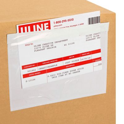 Top Loading Packing List Envelopes Clear, 7 1/2 x 5 1/2" S750 Uline