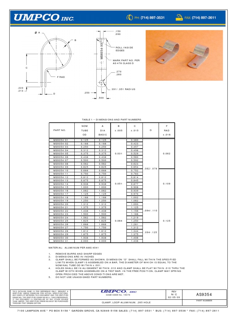 AS21919 datasheet(2/4 Pages) UMPCO CLAMP, LOOP CUSHIONED