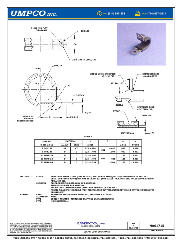 NAS1715 datasheet(1/2 Pages) UMPCO CLAMP, LOOP CUSHIONED