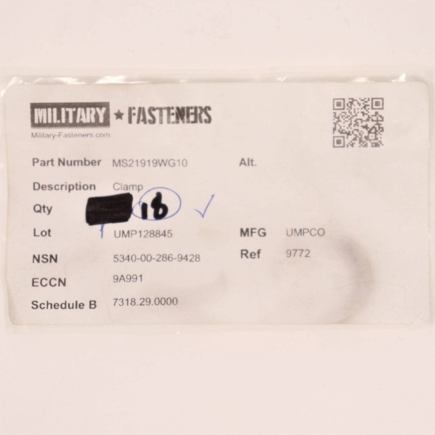 Umpco MS21919WDG16, 16 Clamp, 10 Piece Lot