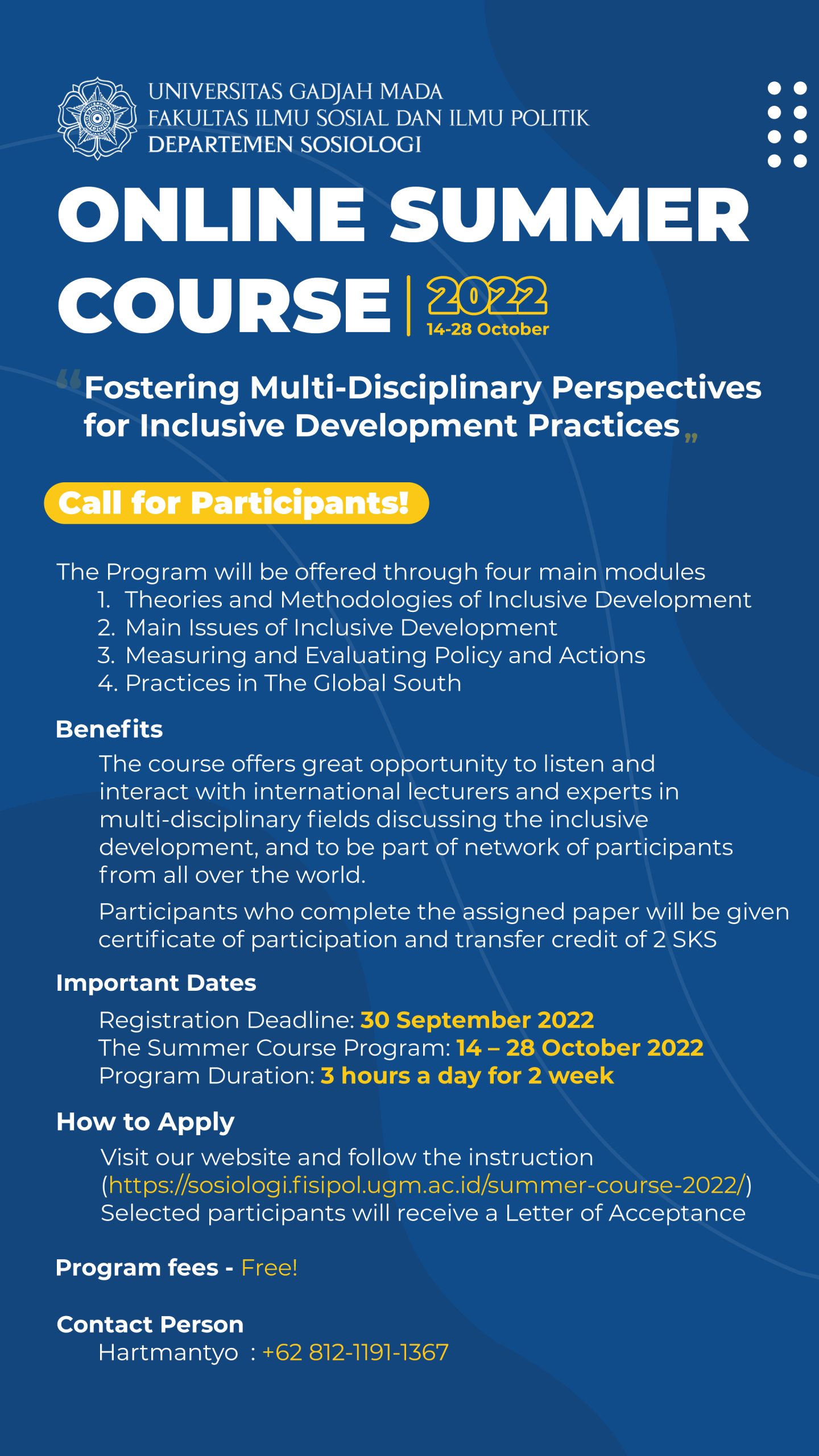 ![[UGM Summer Course] Toward Inclusive Development Practices Fostering A](https://oia.ugm.ac.id/wp-content/uploads/sites/326/2022/09/Summer-Course-2022-Poster-scaled.jpg)