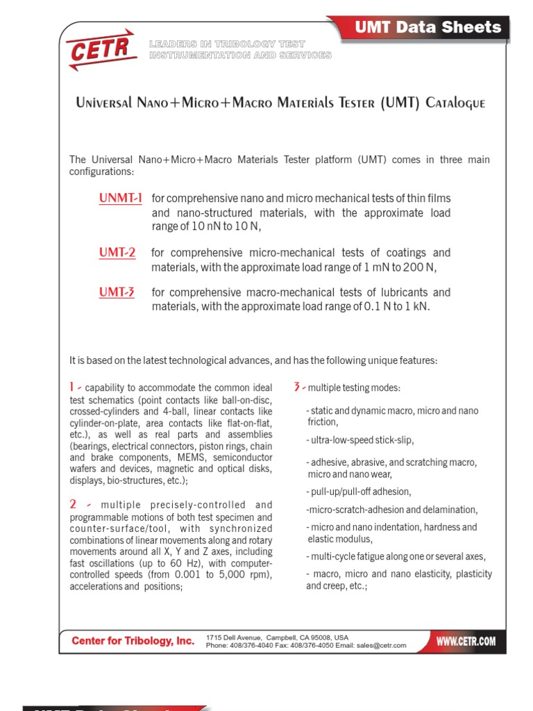 UMT Catalog 2009 PDF Atomic Force Microscopy Friction