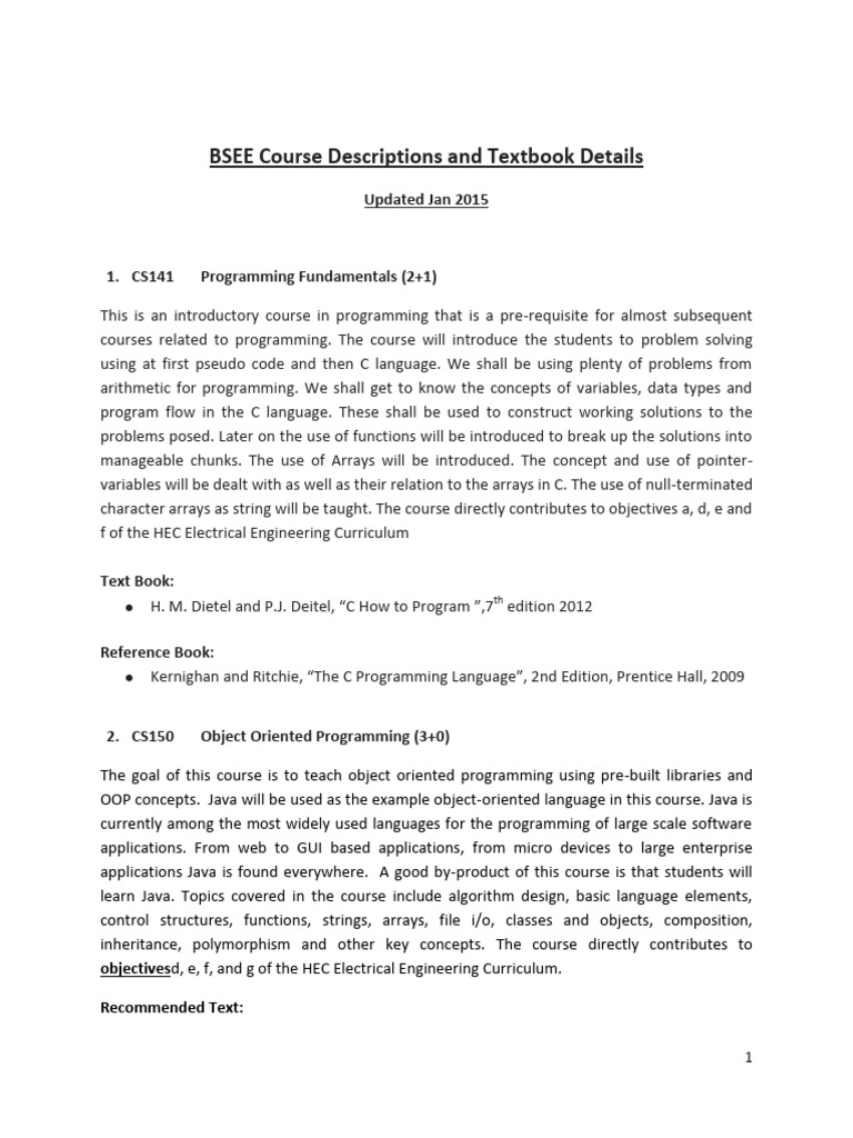 UMT BSEE Course Catalog 2015 PDF Numerical Analysis Mathematical