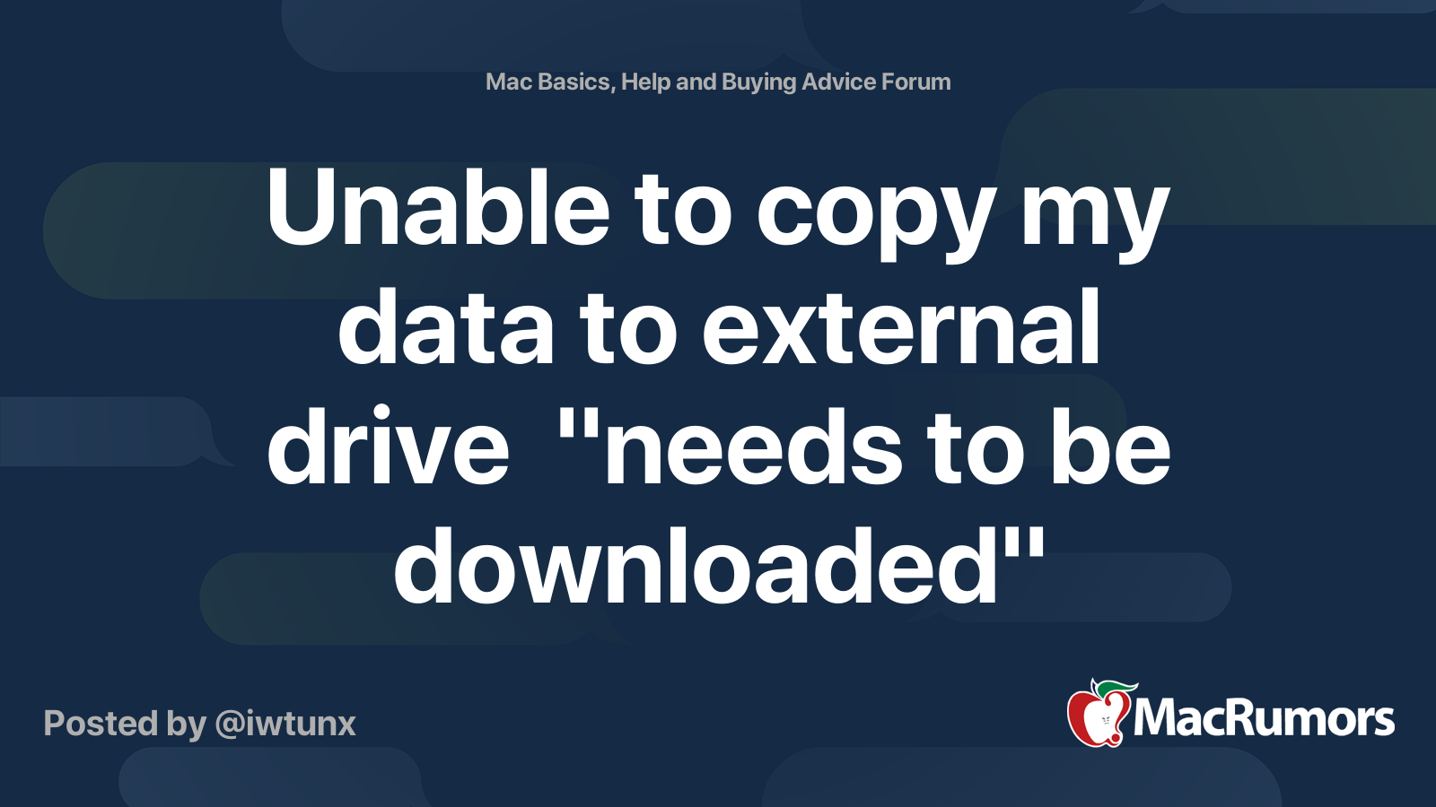 Unable to copy my data to external drive "needs to be downloaded
