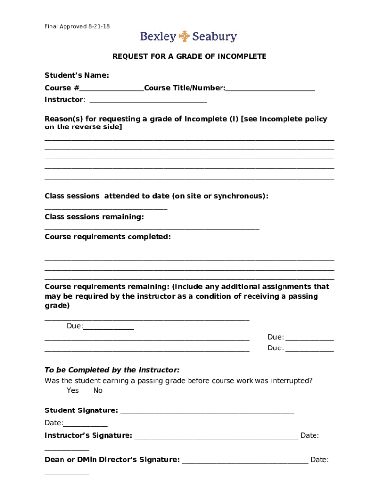 Fillable Online Attendance, Grading, and Examination UNC Catalog Fax