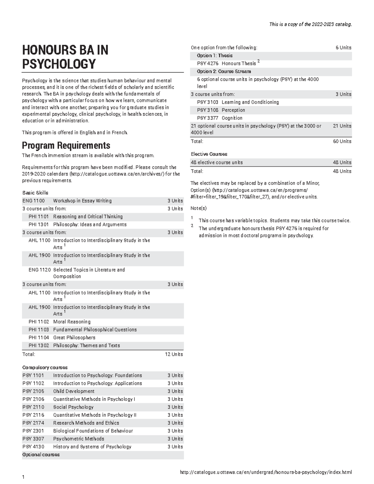 Course sequence This is a copy of the 20222023 catalog. HONOURS BA