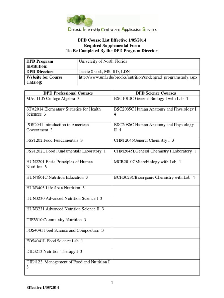 UNF Dietetic Professional Studies (M.S.) Online