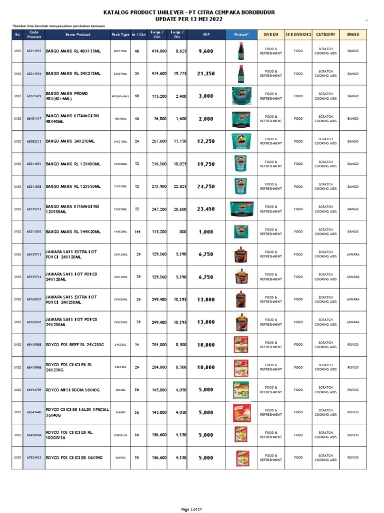 Katalog Product Unilever Per 13 Mei 2022 PDF Personal Hygiene