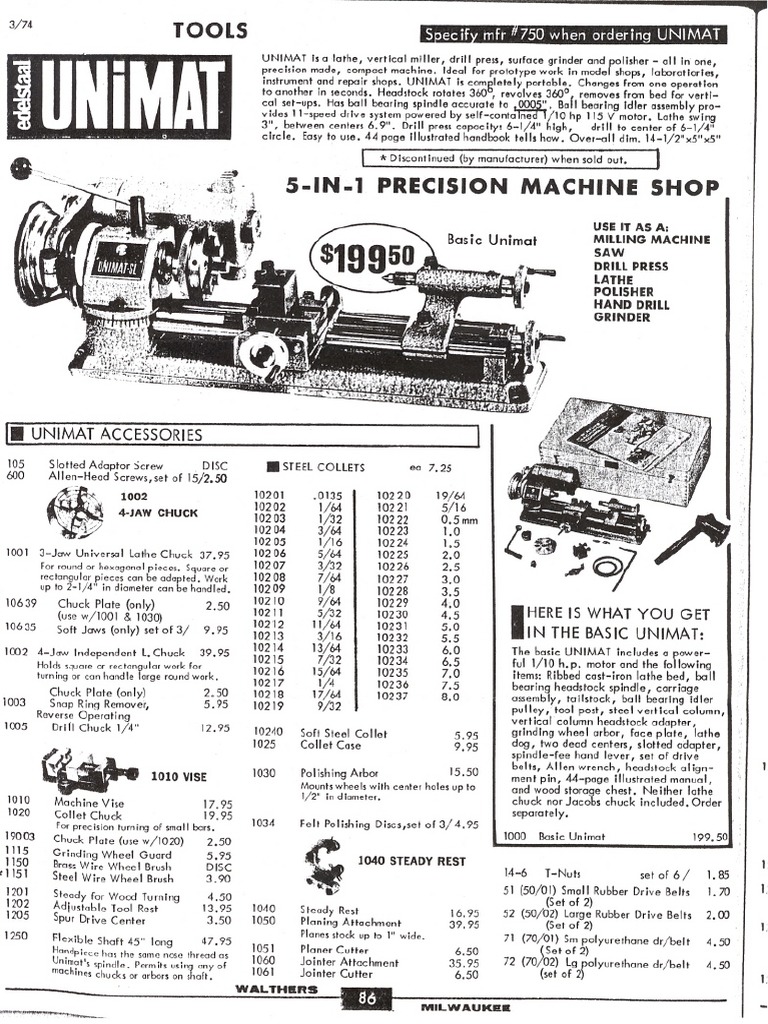 Unimat SL Edelstaal Catalog (No UA/72) + Edelstaal Cutting Tool System