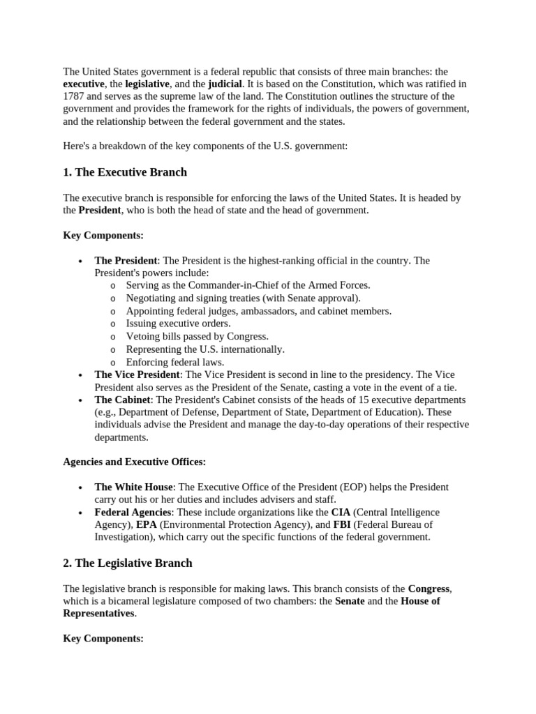 The United State Government PDF Federal Government Of The United