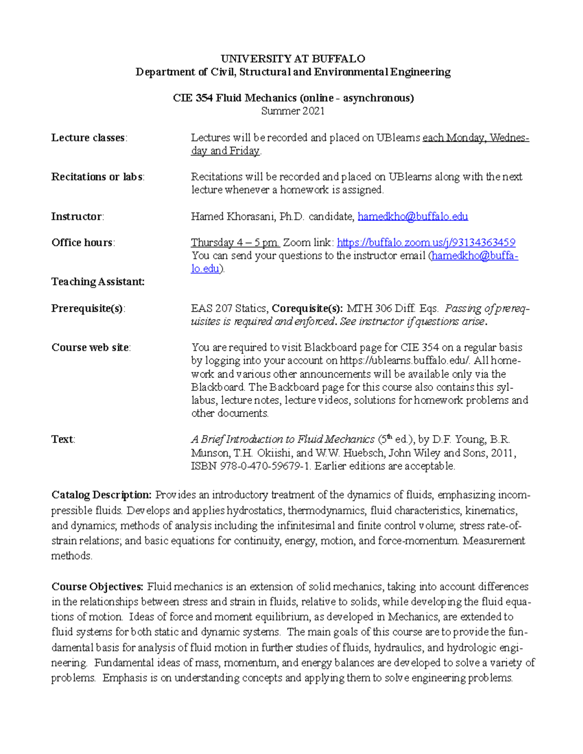 CIE354 Syllabus 2021 UNIVERSITY AT BUFFALO Department of Civil