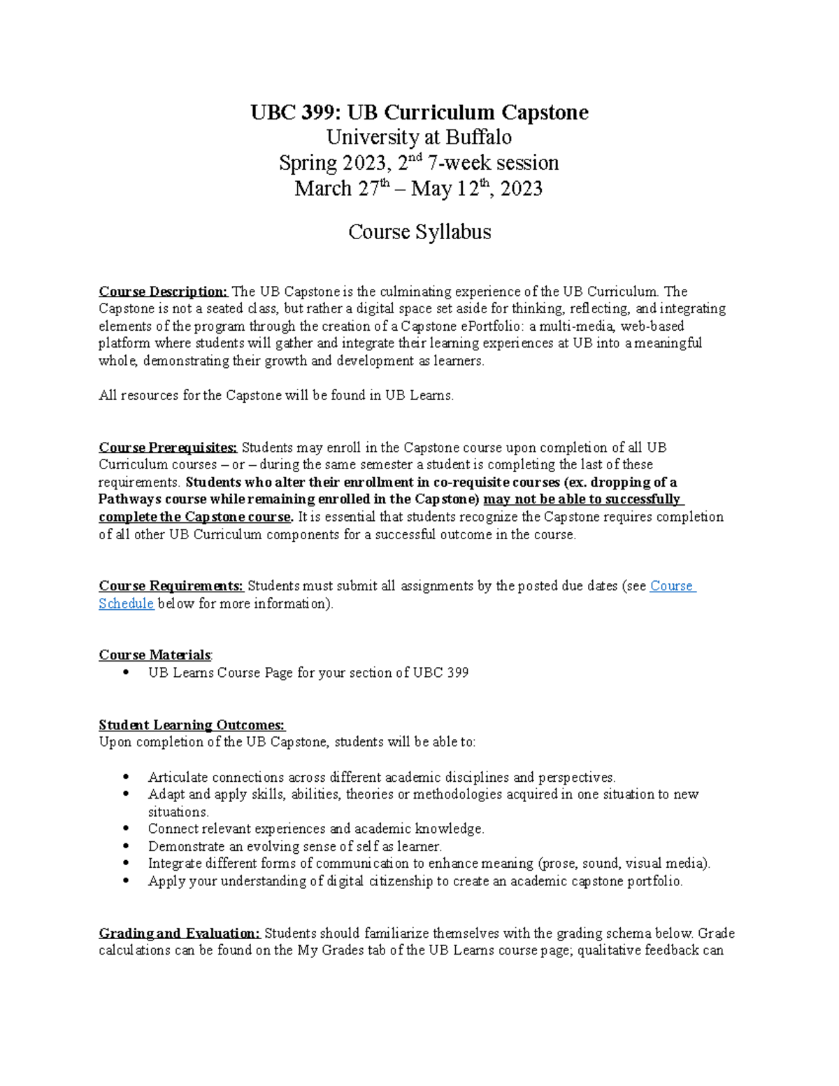UBC 399 Spring 2023 Syllabus UBC 399 UB Curriculum Capstone