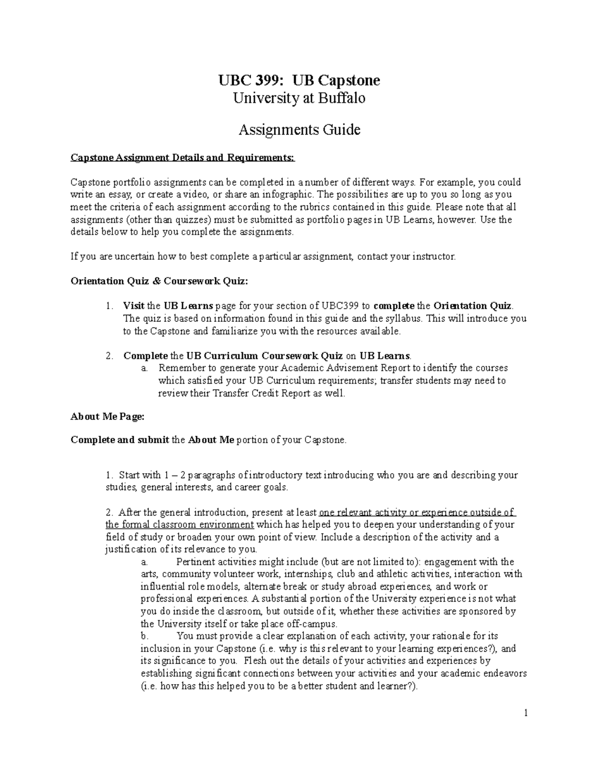 UBC 399 Guide for syllabus and assignments UBC 399 UB Capstone
