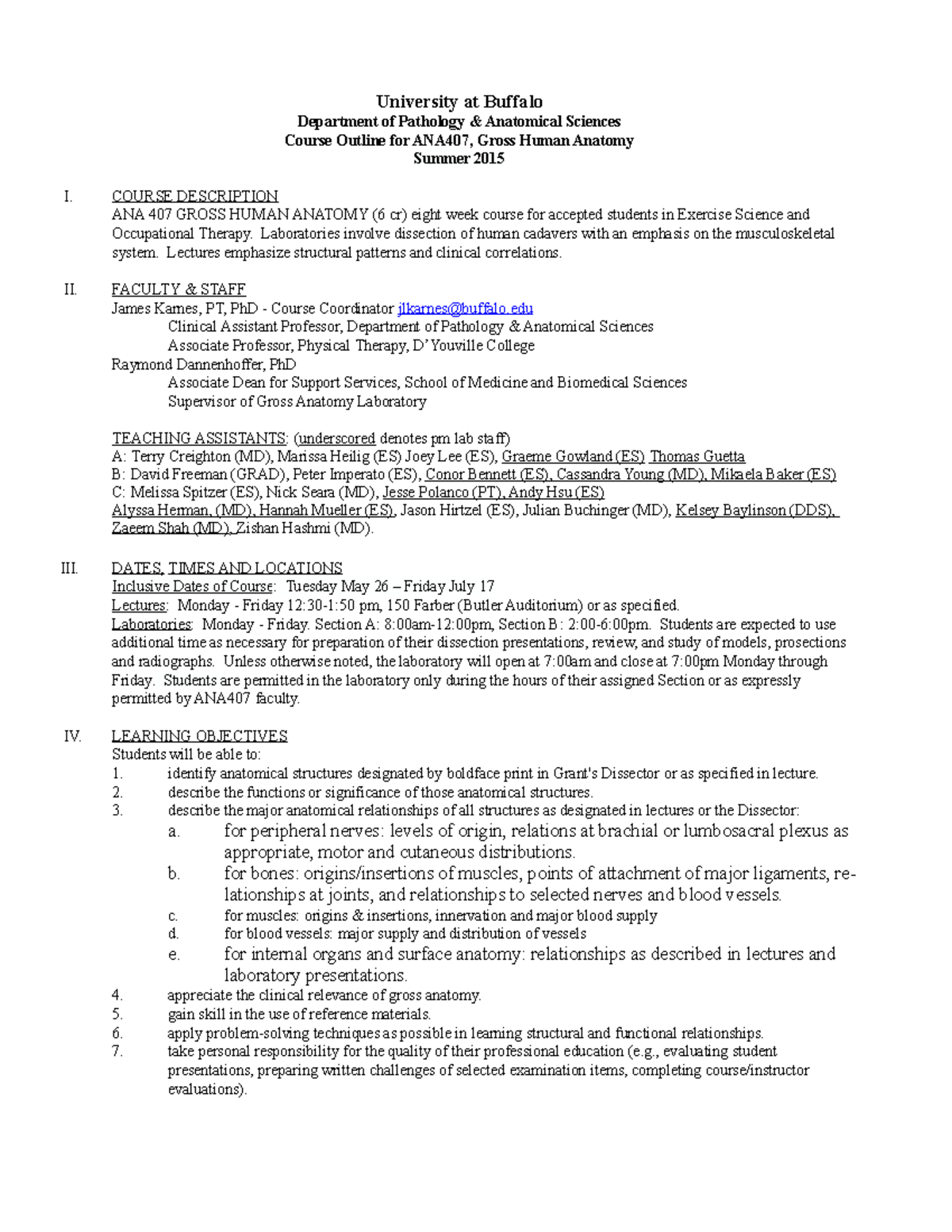 ANA407 Syllabus 2015 051915 Word University at Buffalo Department of