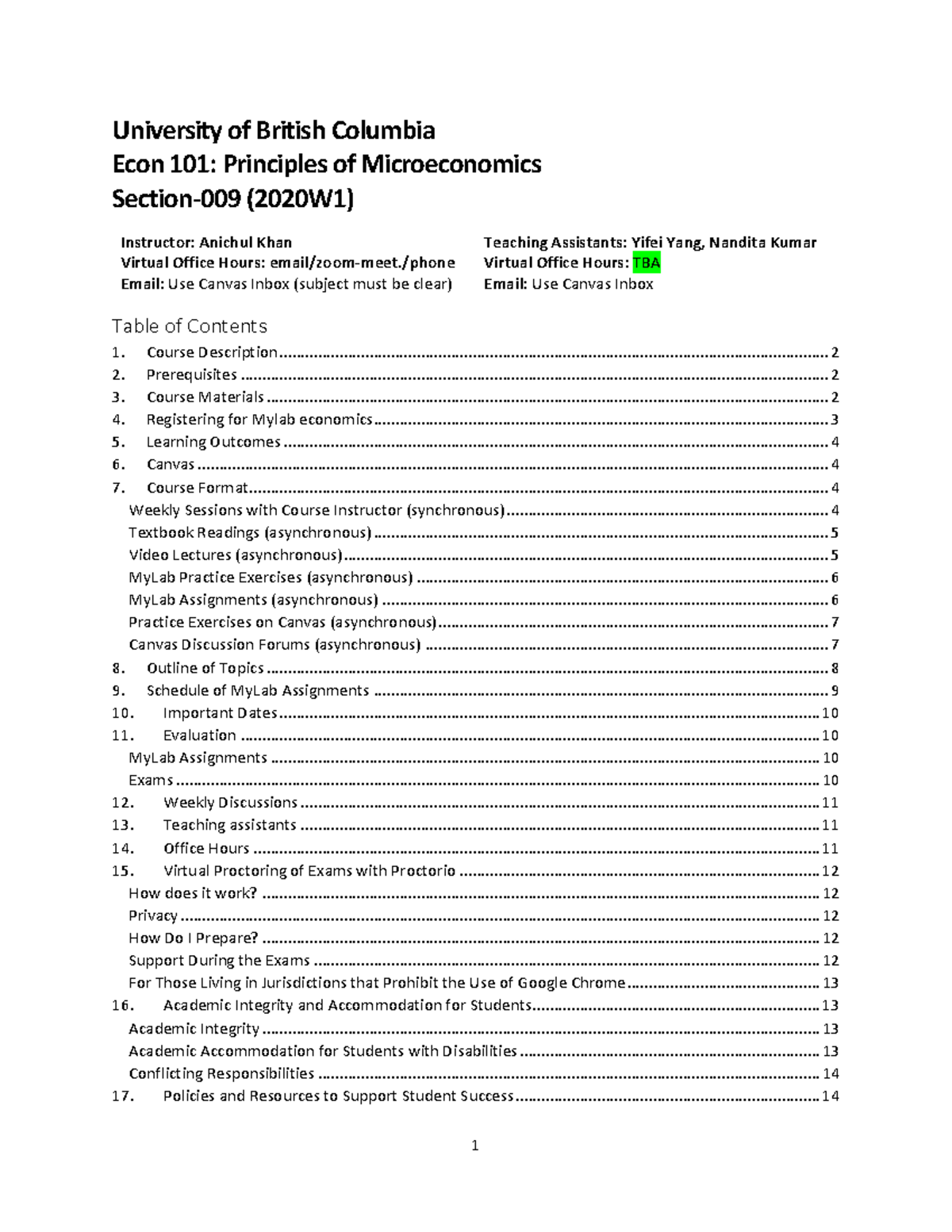 Econ101 2020W1 009 course outline 2 University of British Columbia