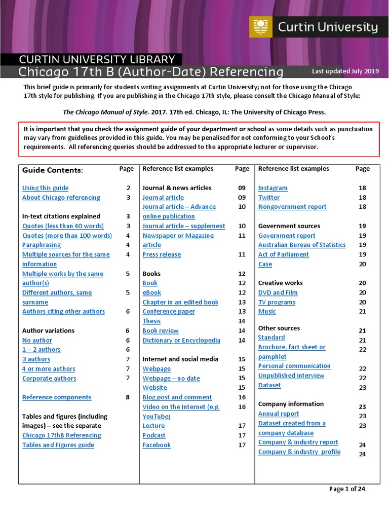 Guide Contents The Chicago Manual of Style. 2017. 17th Ed. Chicago, IL