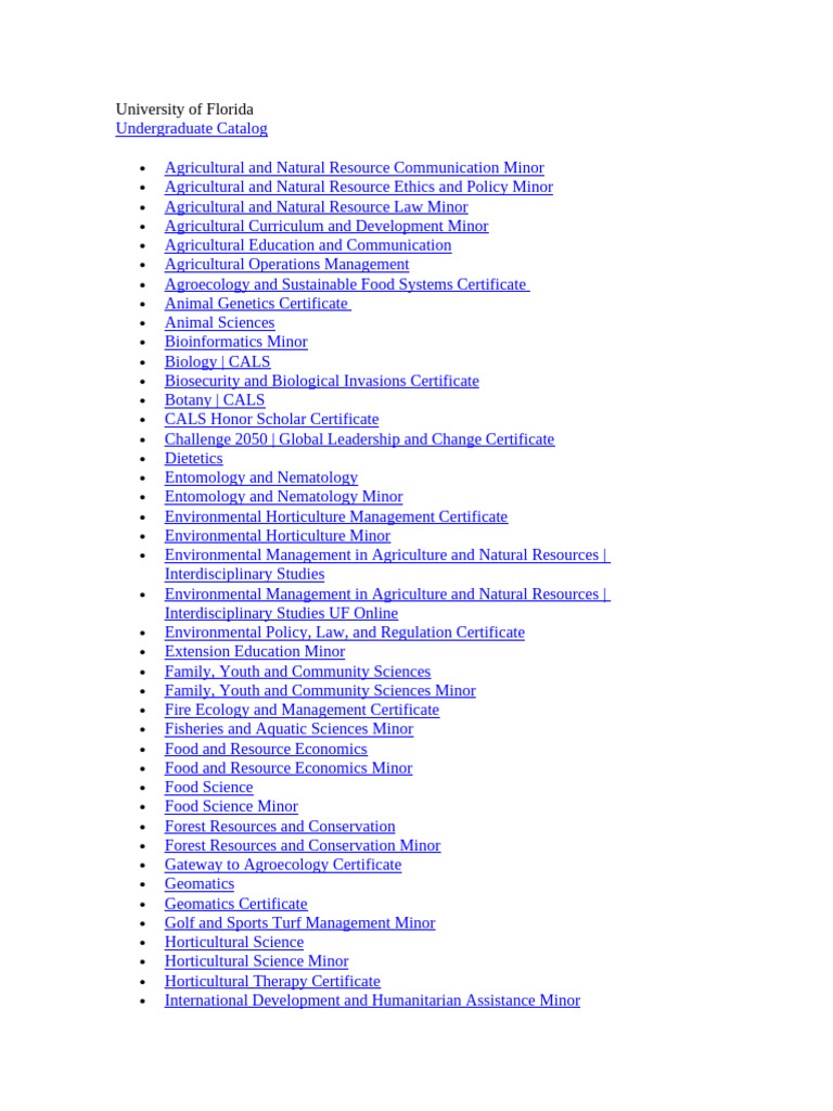 University of Florida Undergraduate Catalog PDF Agriculture