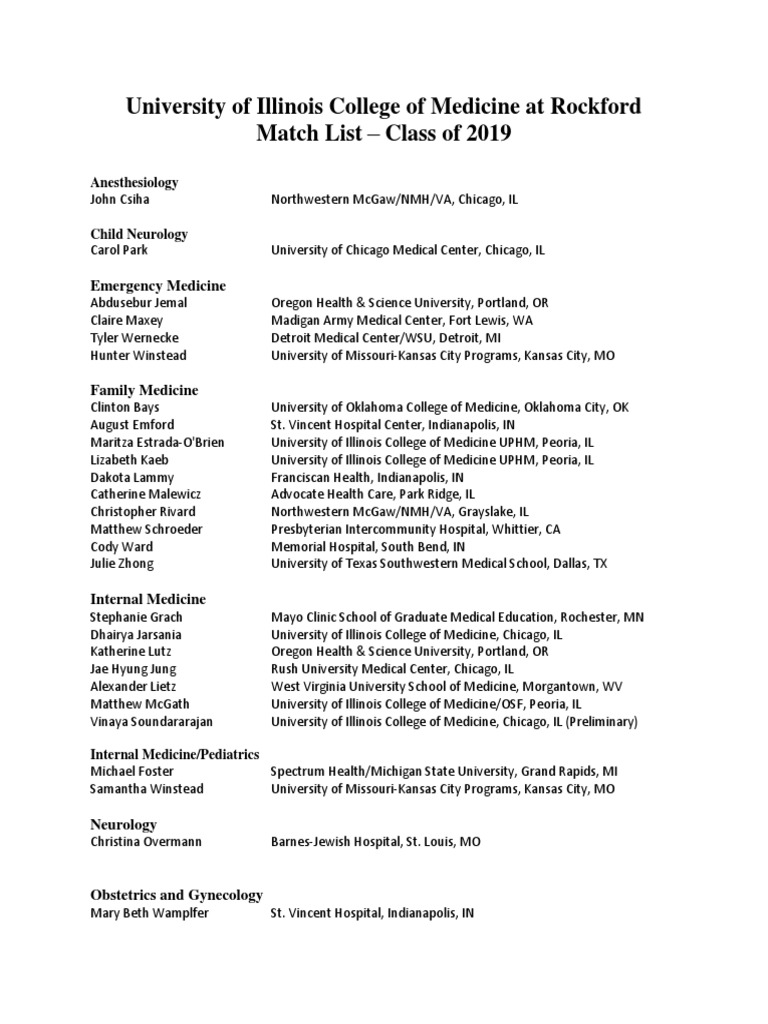 University of Illinois College of Medicine at Rockford Match List