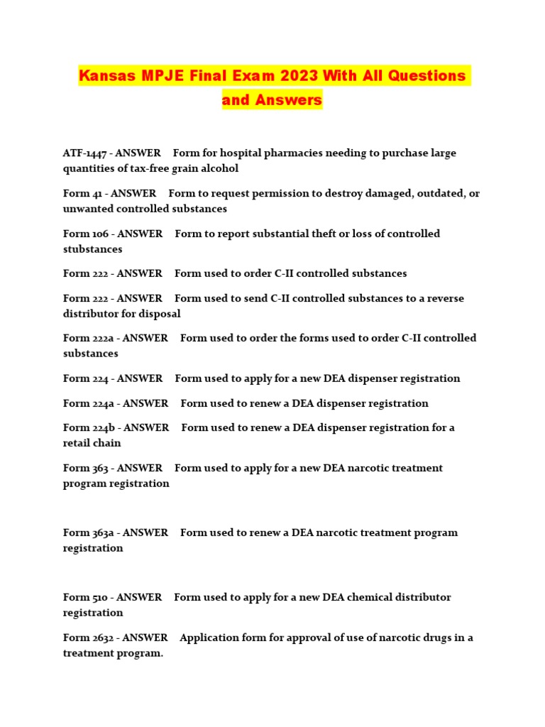 Kansas Mpje Final Exam 2023 With All Questions and Answers PDF