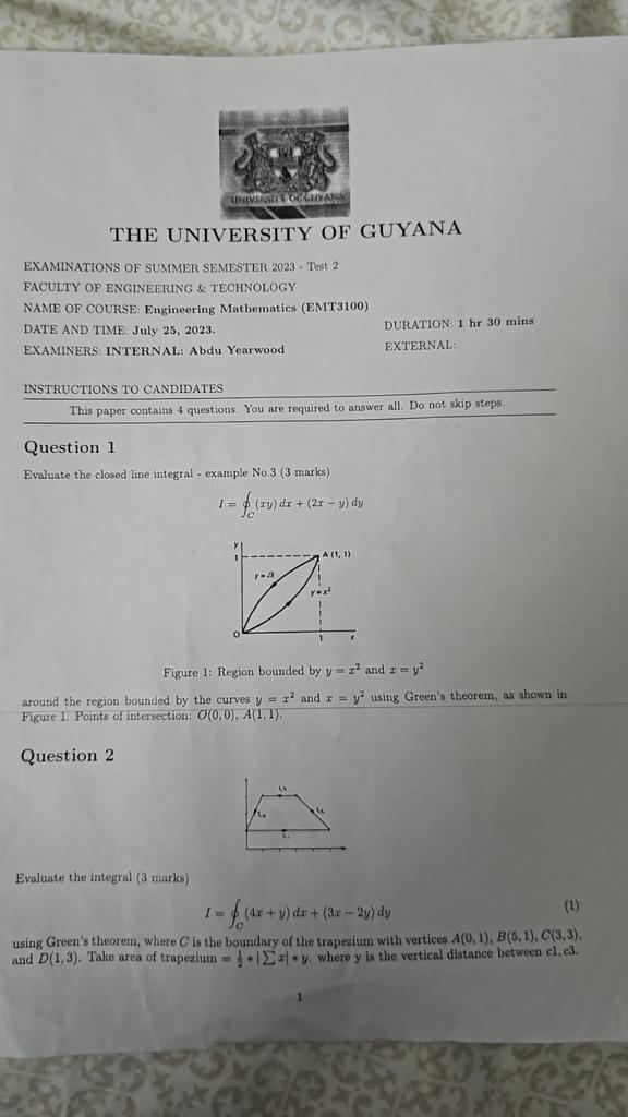 THE UNIVERSITY OF GUYANA EXAMINATIONS OF SUMMER