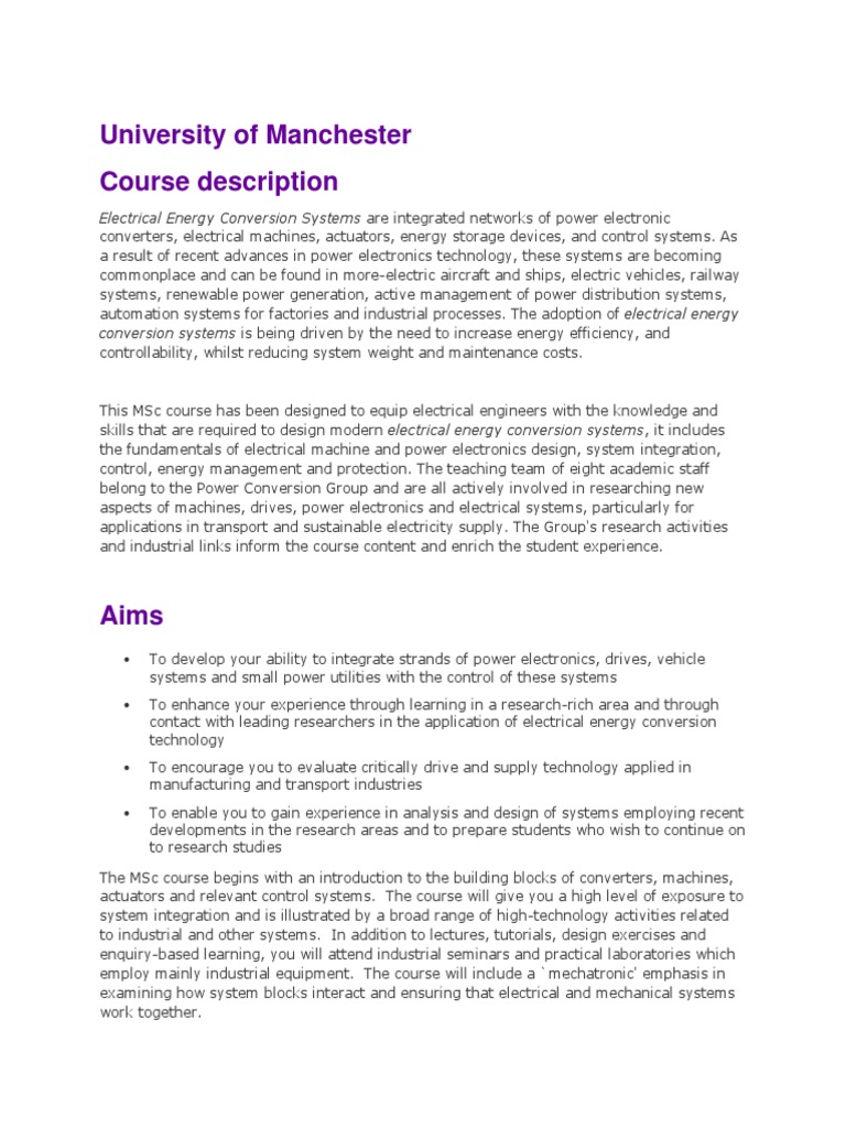 University of Manchester Course Description Download Free PDF Power