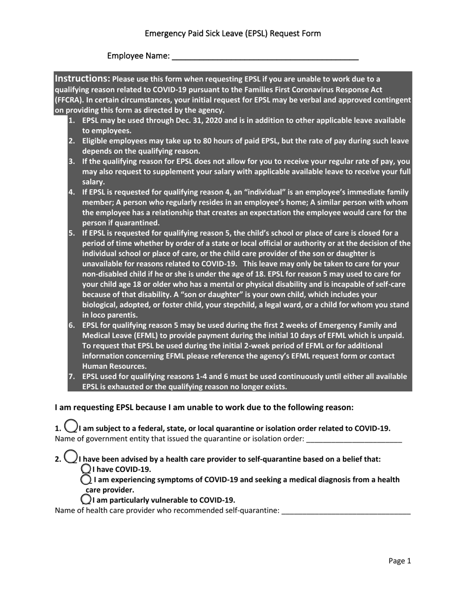 Mississippi Emergency Paid Sick Leave (Epsl) Request Form Fill Out
