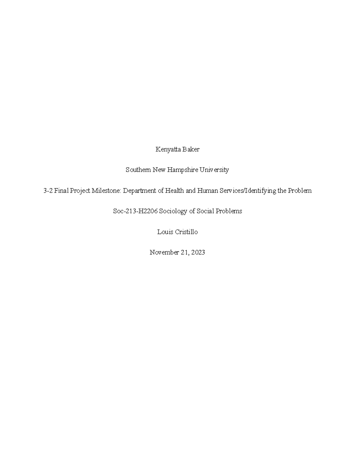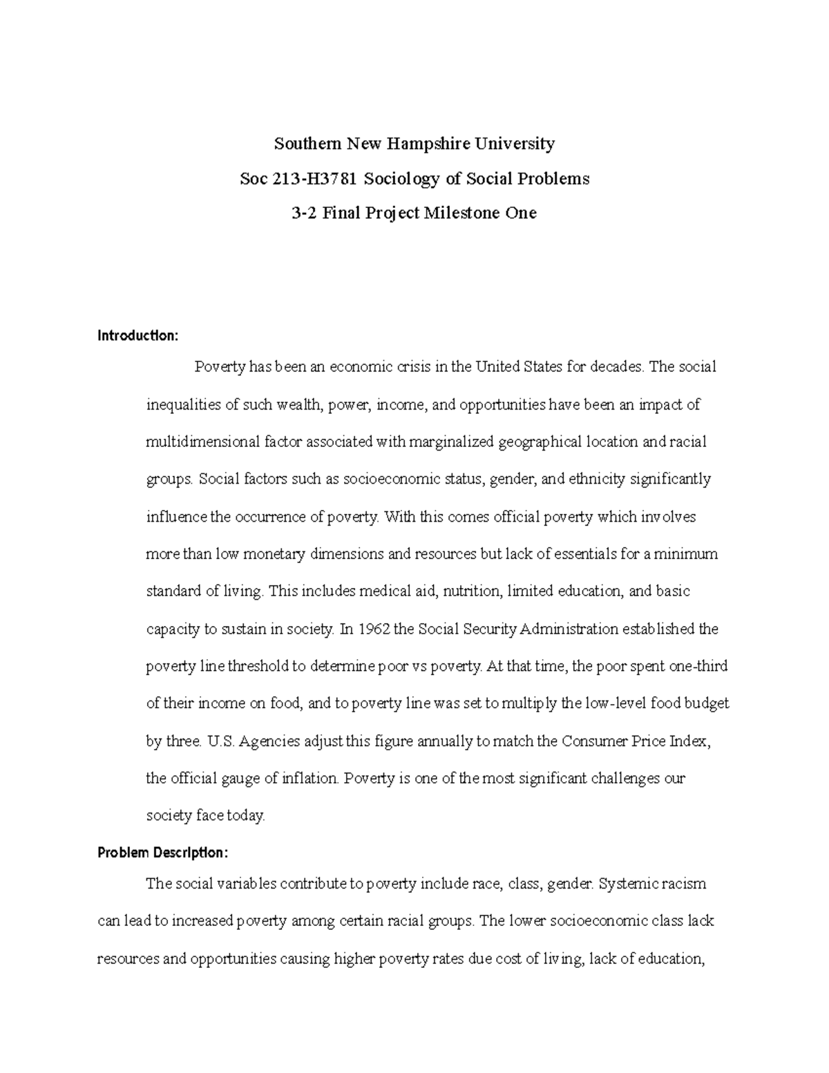 Module 32 Milestone One Southern New Hampshire University Soc 213