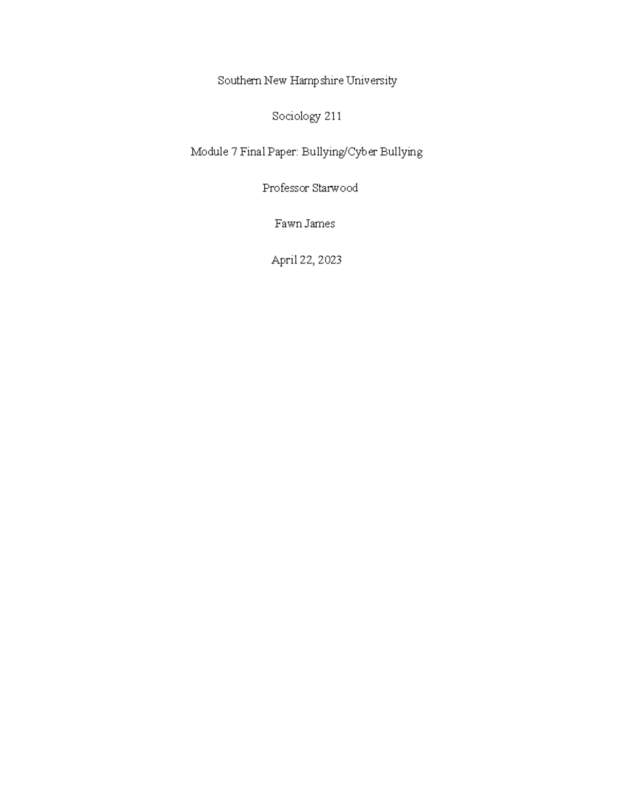 Sociology 112 Module 7 Final Project Paper Southern New Hampshire