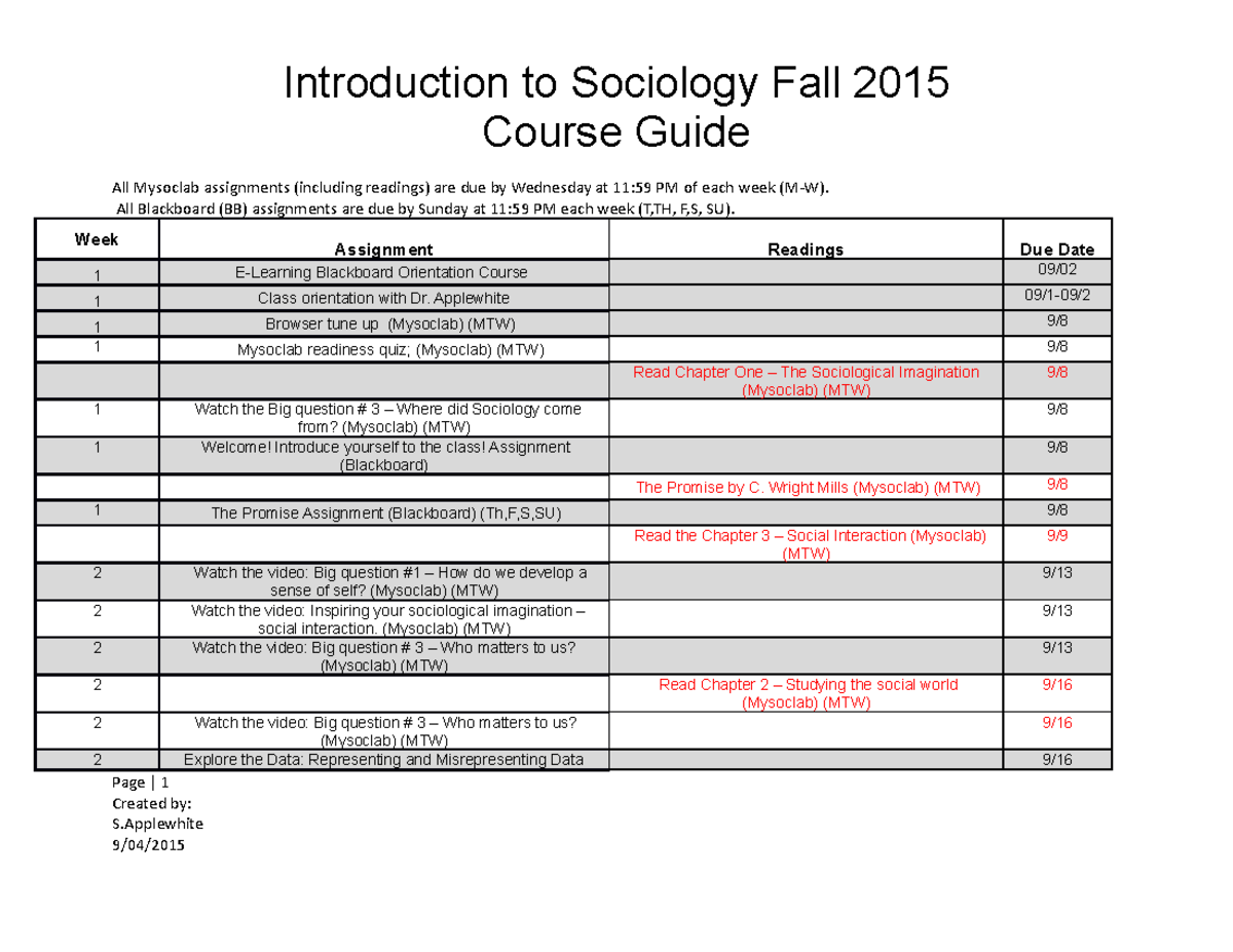 Final version course guide fall 2015 09 Introduction to Sociology