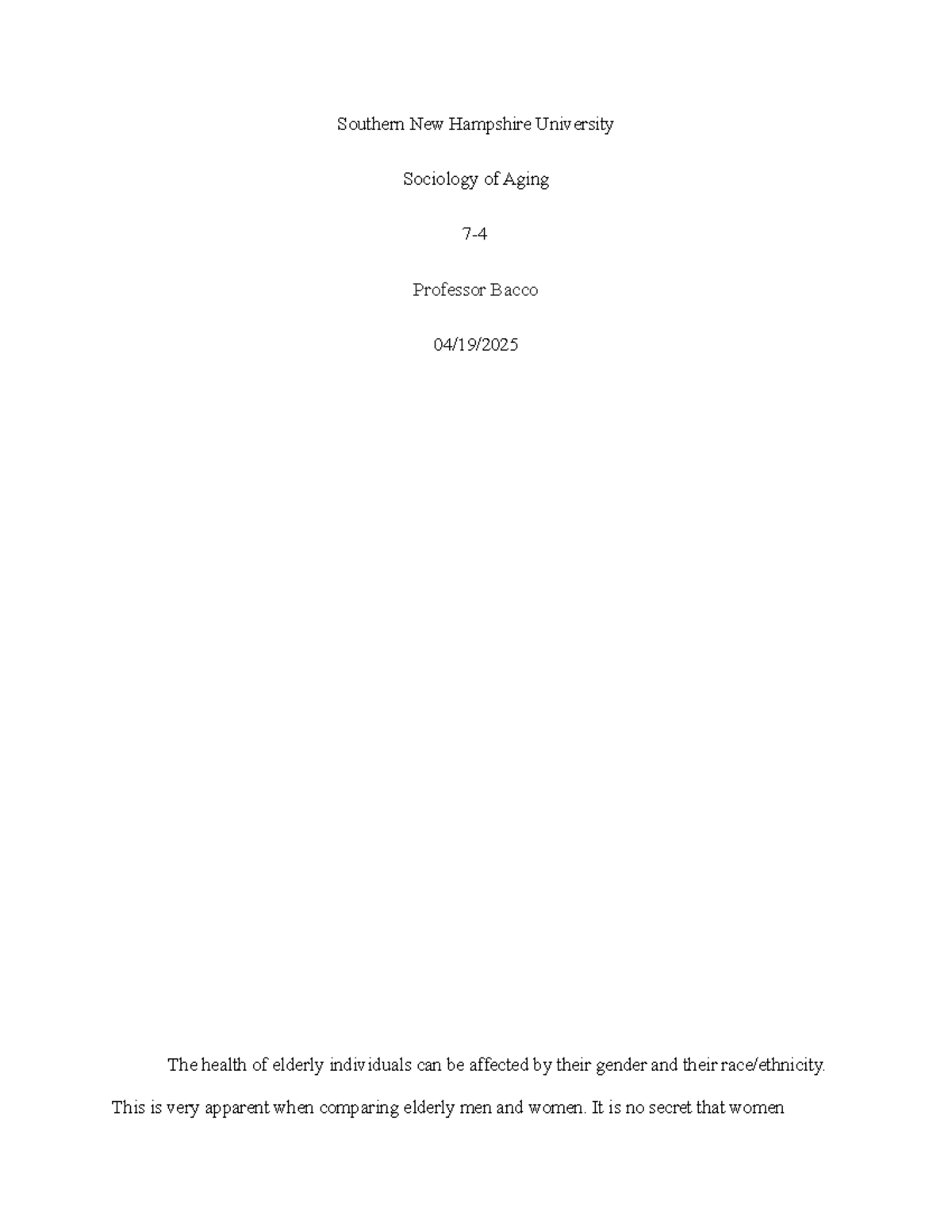 Soc of aging 72 72 assignment SOC328 Southern New Hampshire