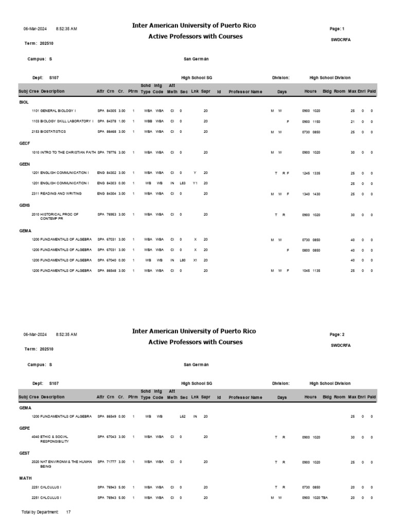 Active Professors With Courses Inter American University of Puerto Rico