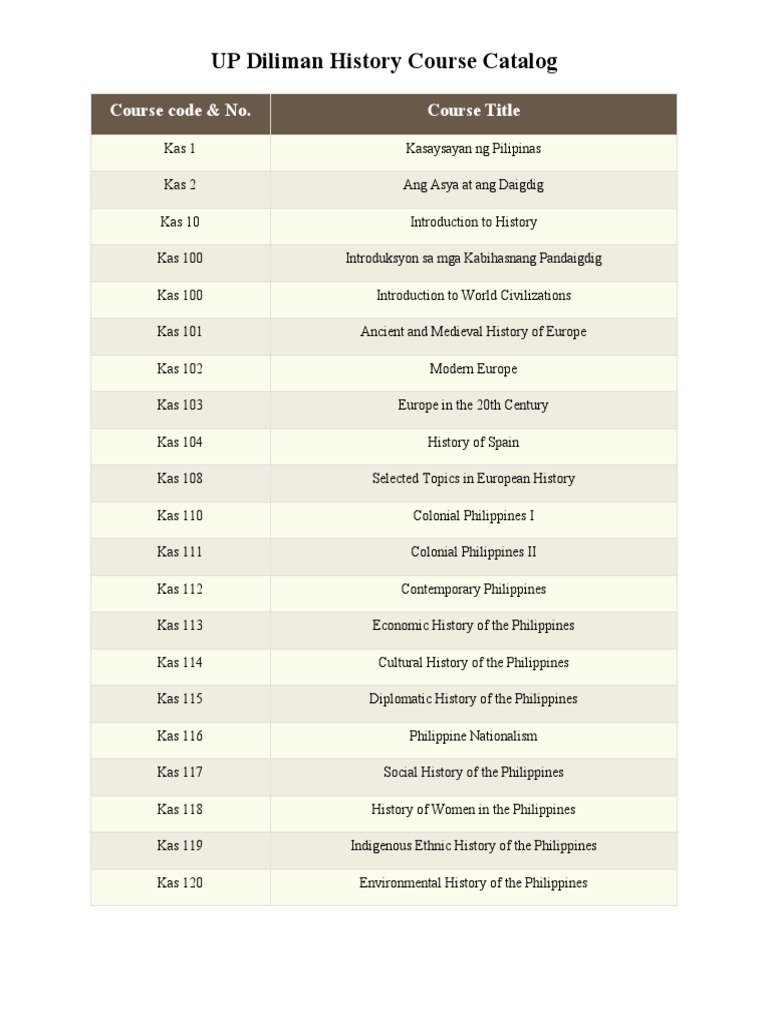 UP Diliman History Course Catalog PDF Philippines Historiography