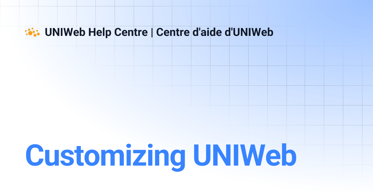 Customizing UNIWeb UNIWeb Help Centre Centre d'aide d'UNIWeb