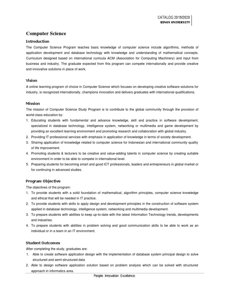 Computer Science CATALOG 2019/2020 PDF Computer Science Programmer
