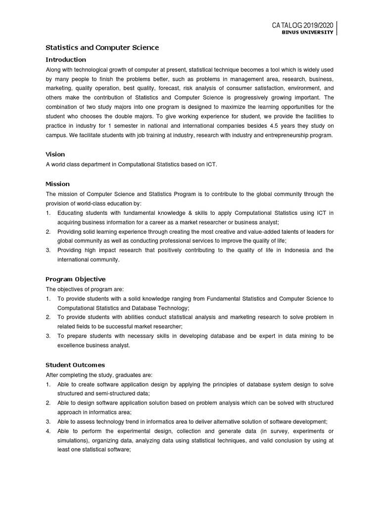 Statistics and Computer Science CATALOG 2019/2020 PDF Statistics
