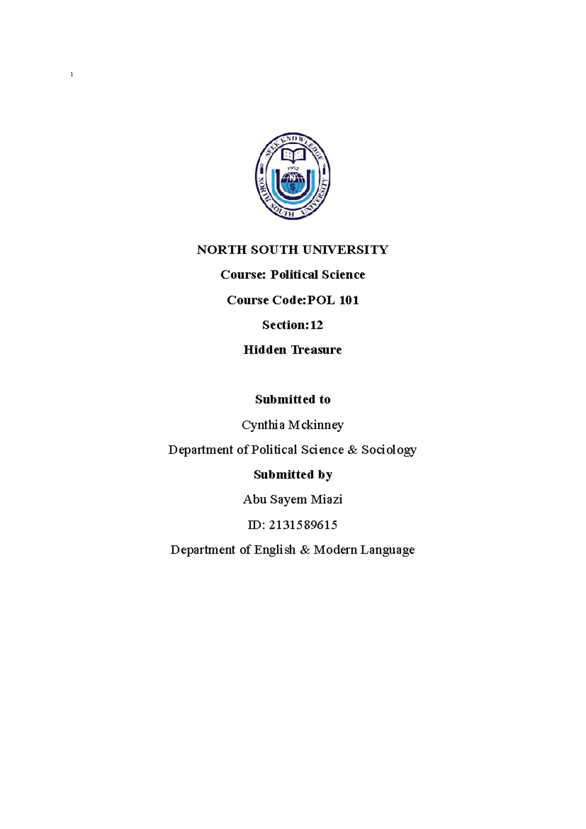 ENG105 i NORTH SOUTH UNIVERSITY Course Political Science Course Code