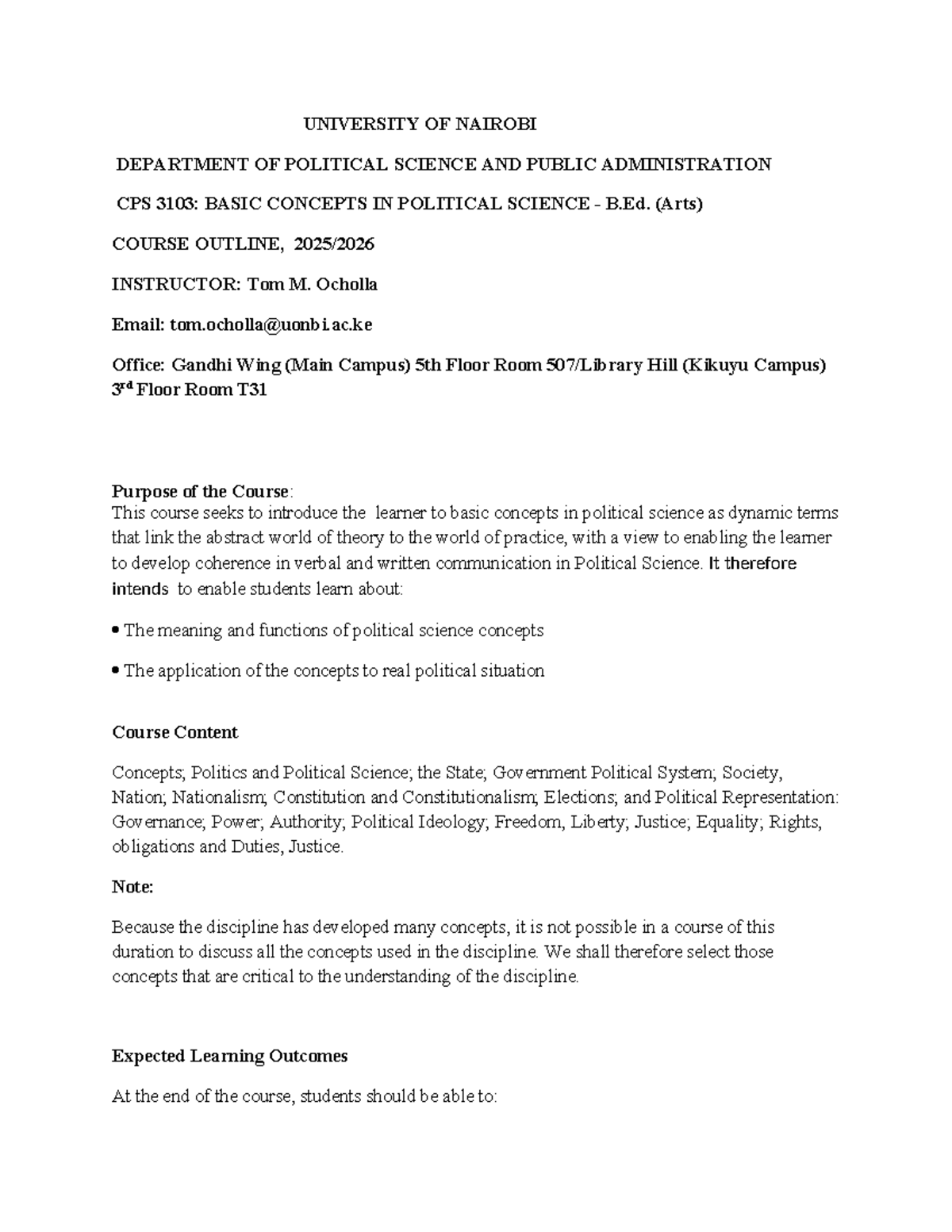 CPS 3103 Basic Concepts in Political Science Course Outline 20252026