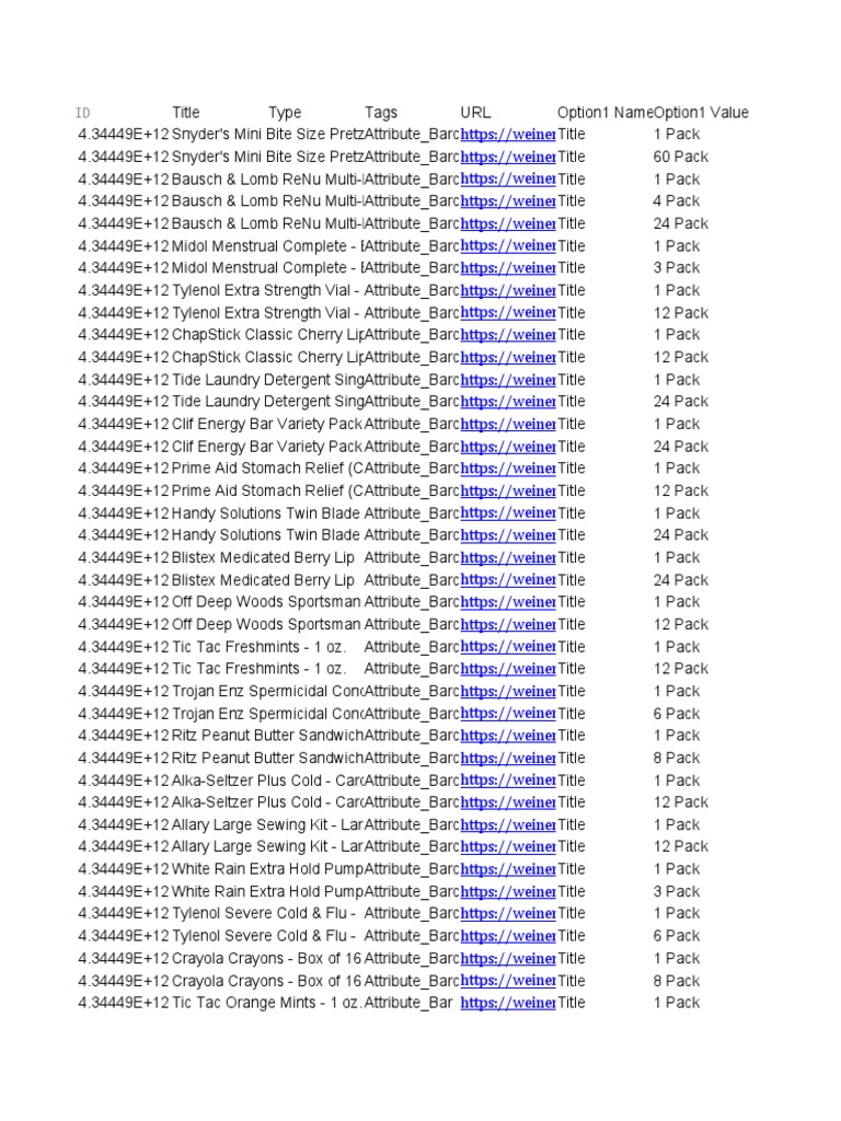 Product Catalog with UPC Codes, Brands and Previous Identification