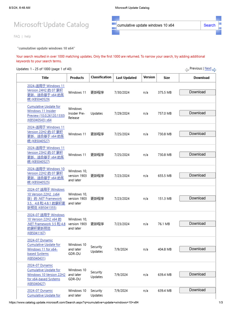 How to get to Microsoft Update Catalog ?Windows 10 Cumulative Updates