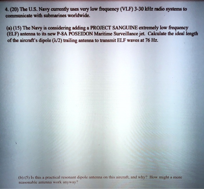 SOLVED 4. (20) The U.S. Navy currently uscs very low frequency (VLF) 3
