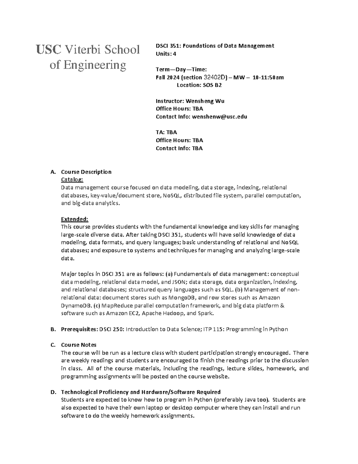 Usc Viterbi Course Catalog