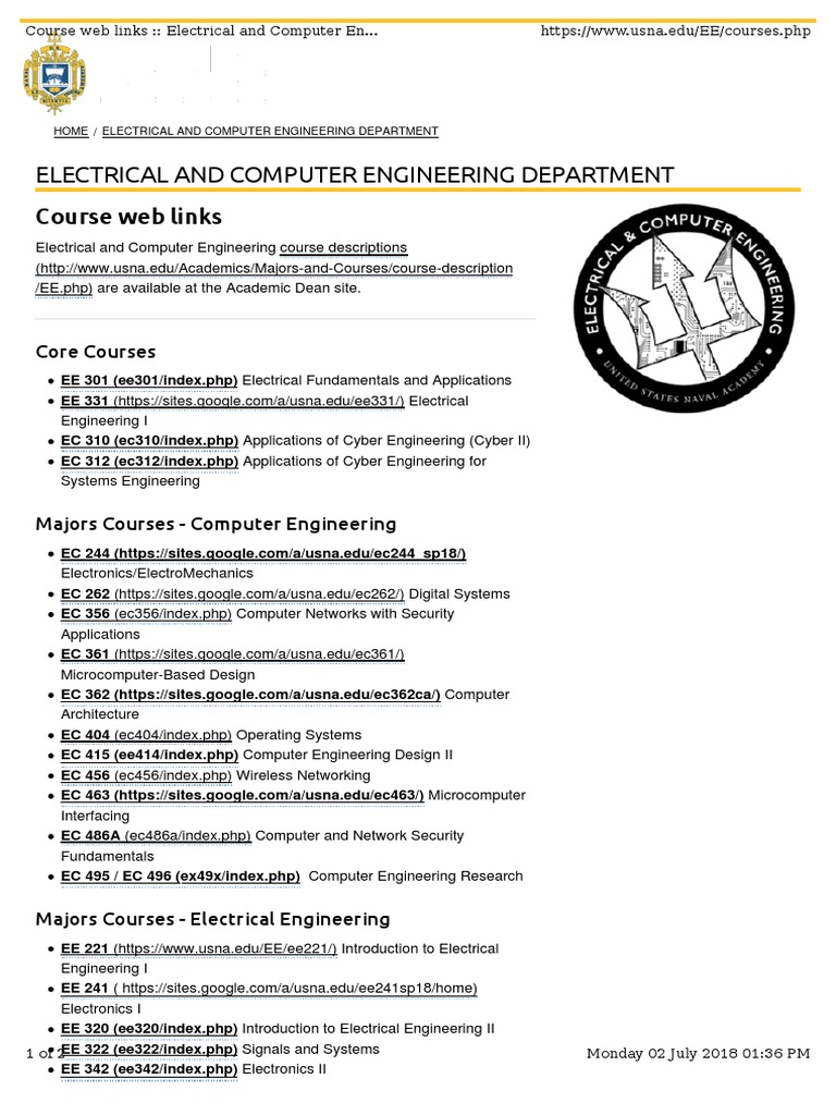 Courses Offered by ECE Department USNA PDF Wireless Electrical