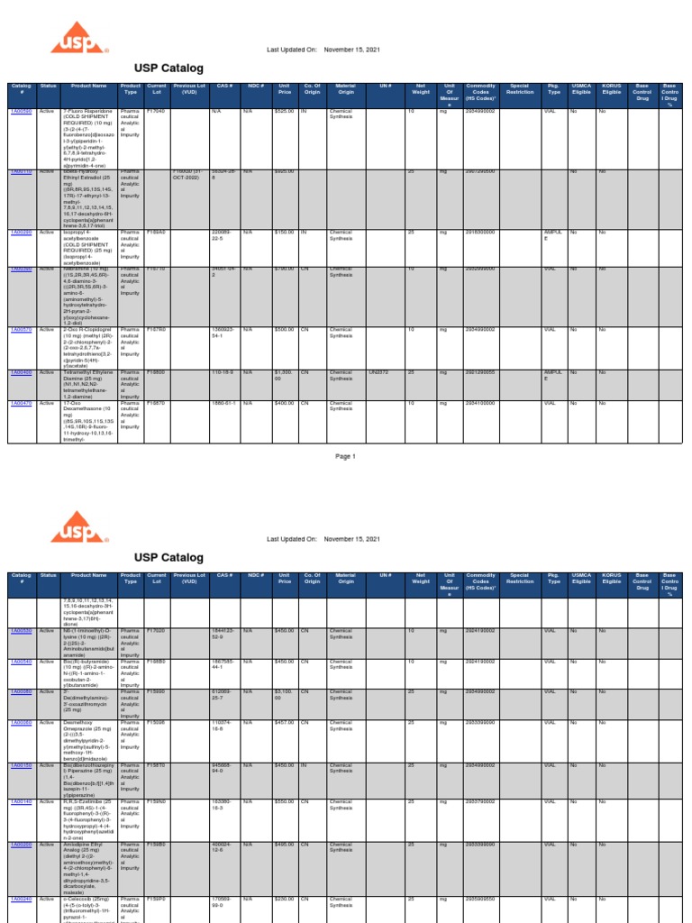 USP Reference Standards Catalog Last Updated On November 7, 2020