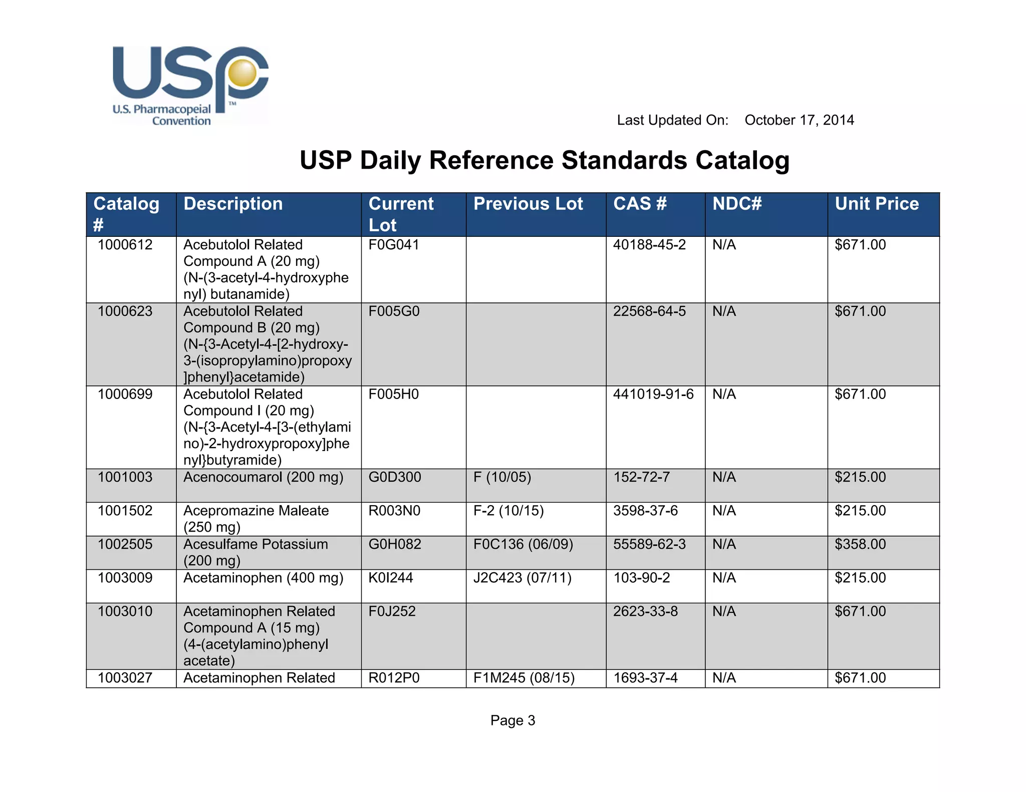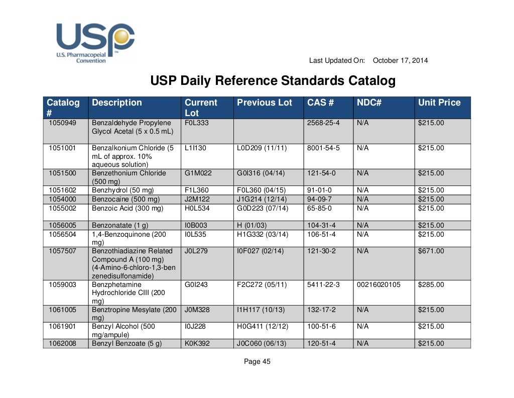 USP Reference Standards Catalog Last Updated On August 21, 2019 PDF