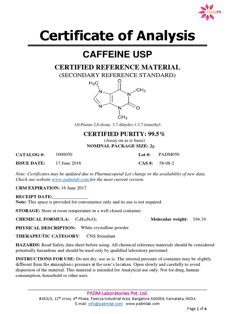 COA of Caffeine USP PDF PDF PDF